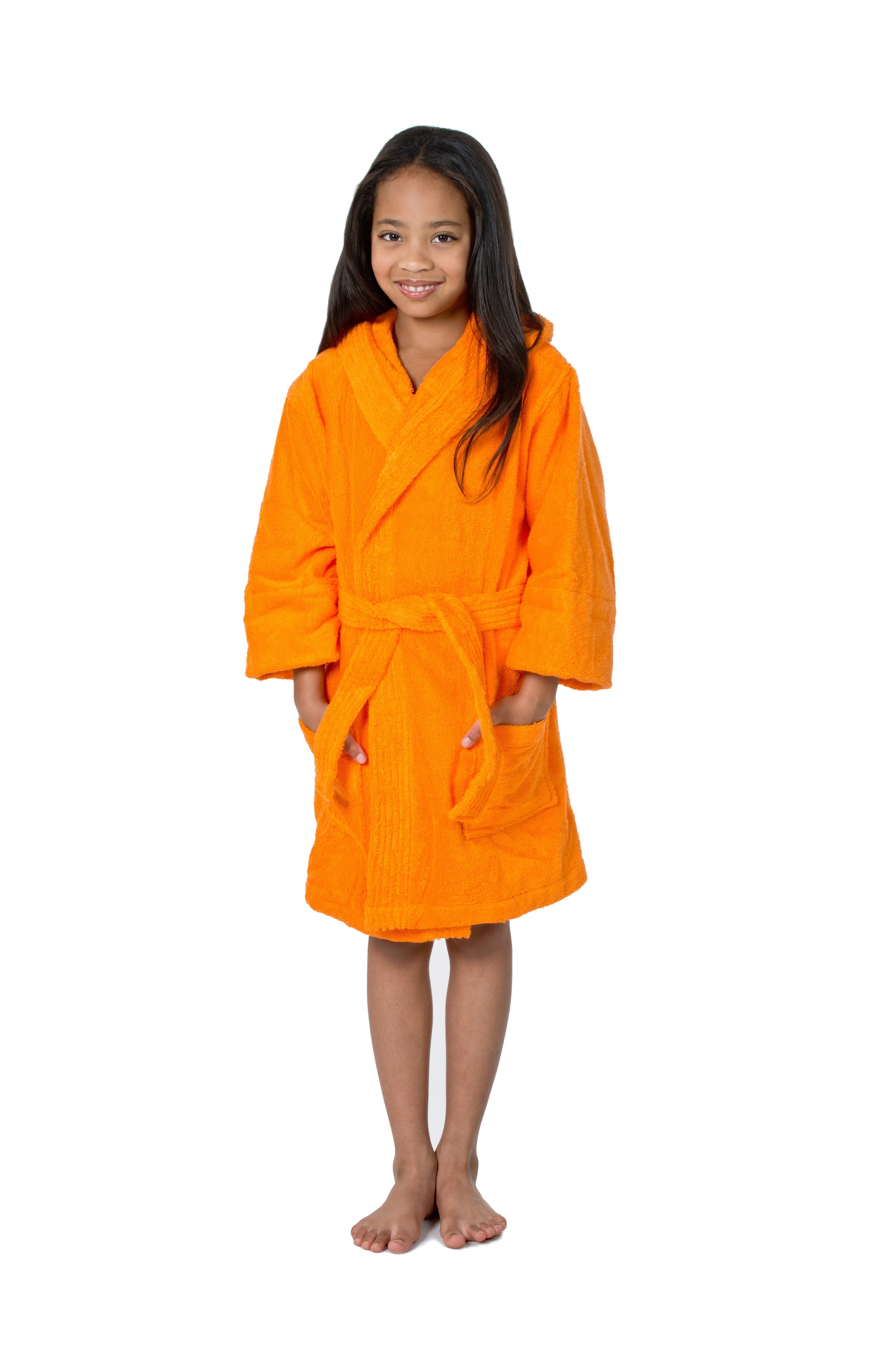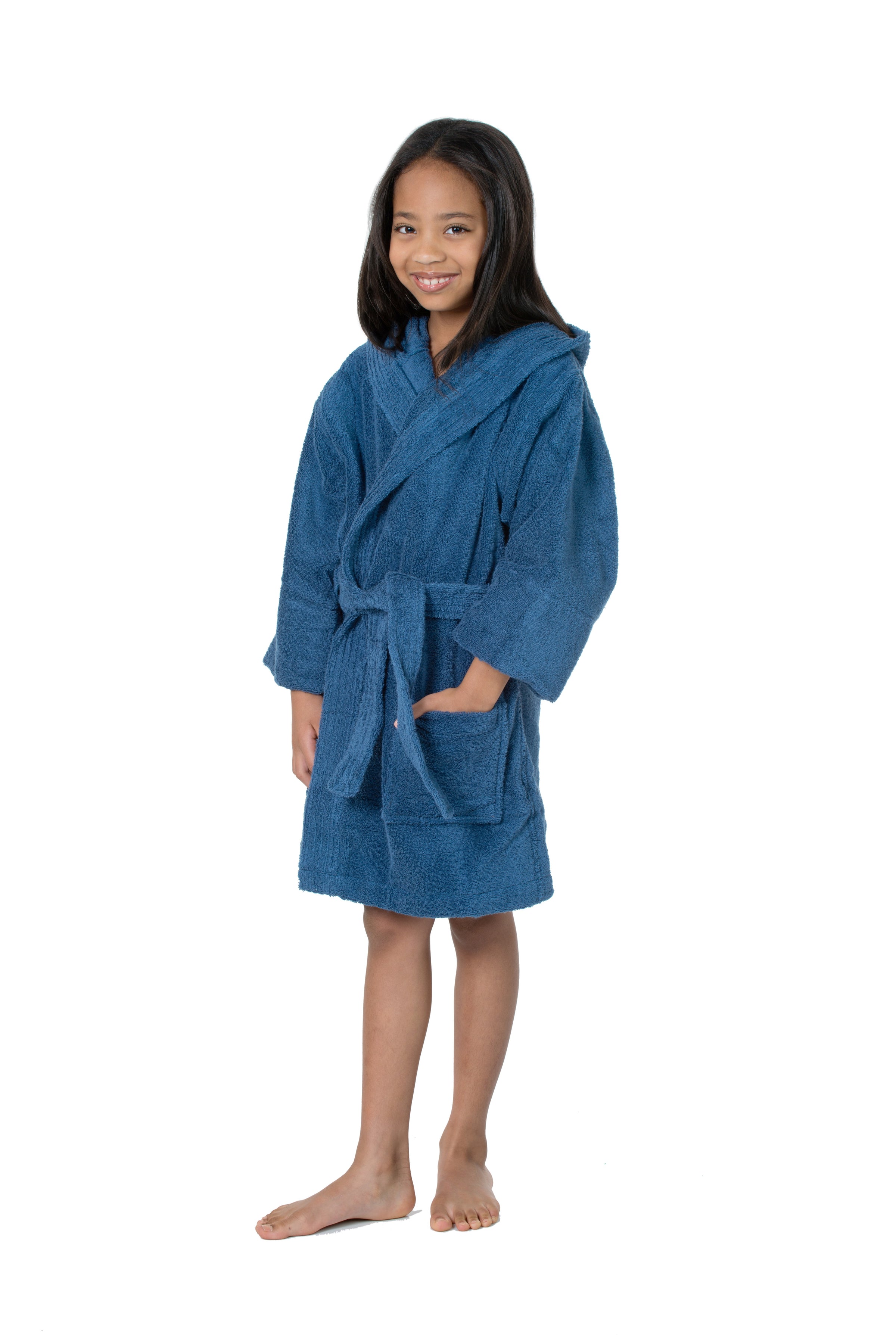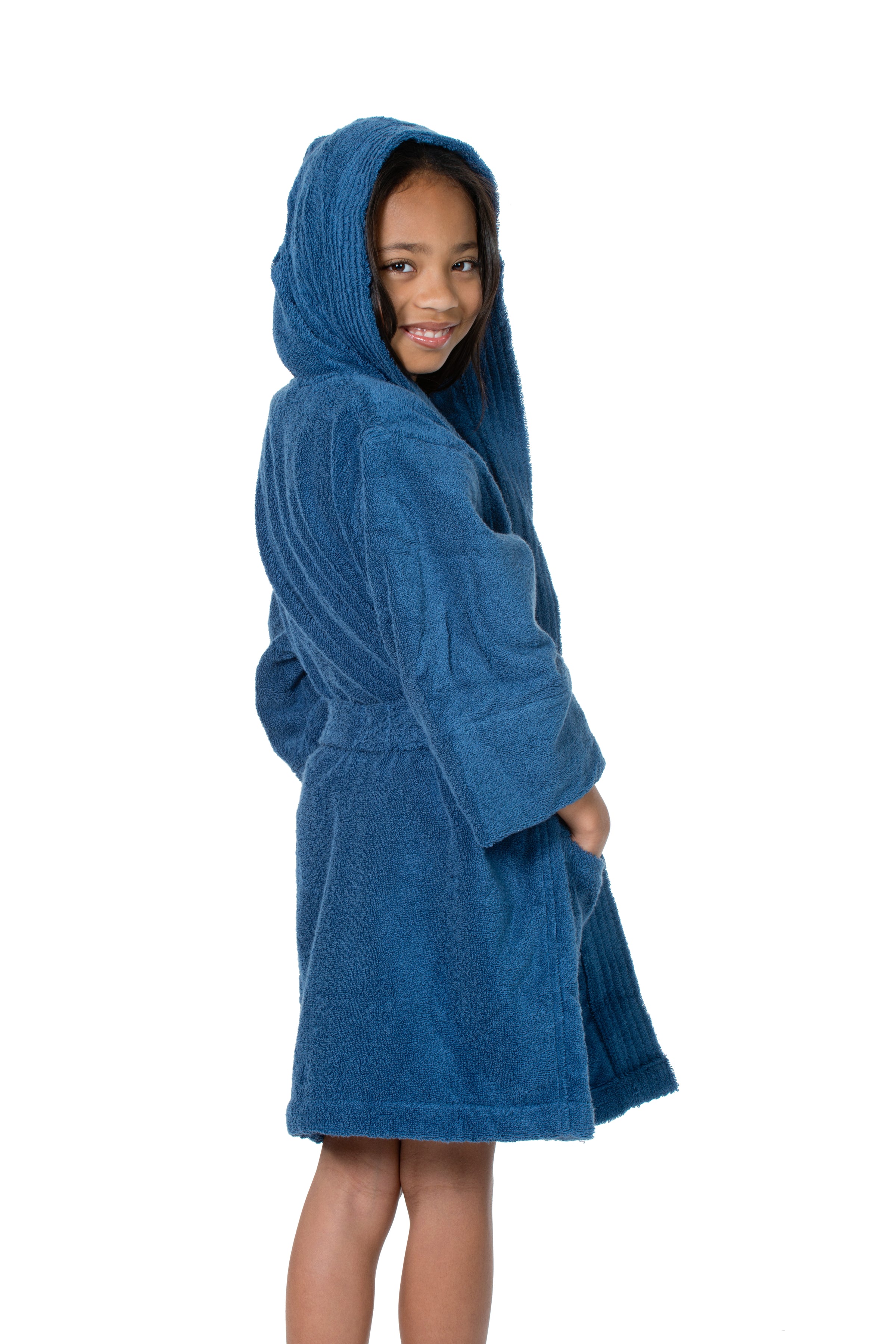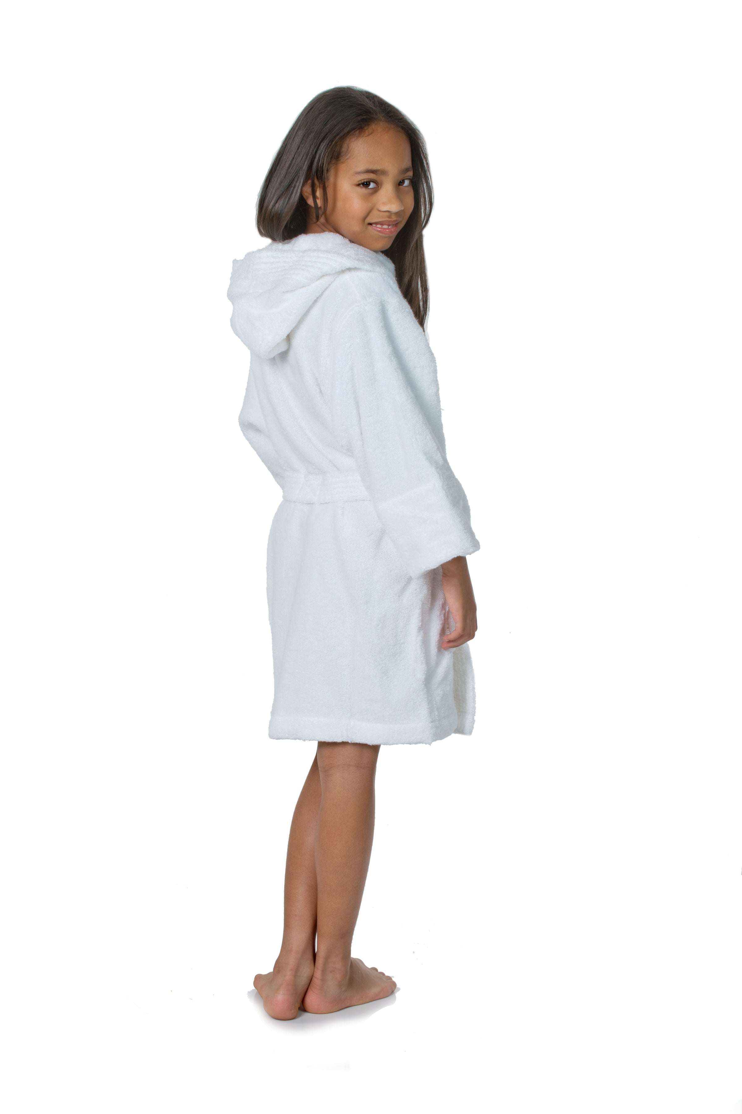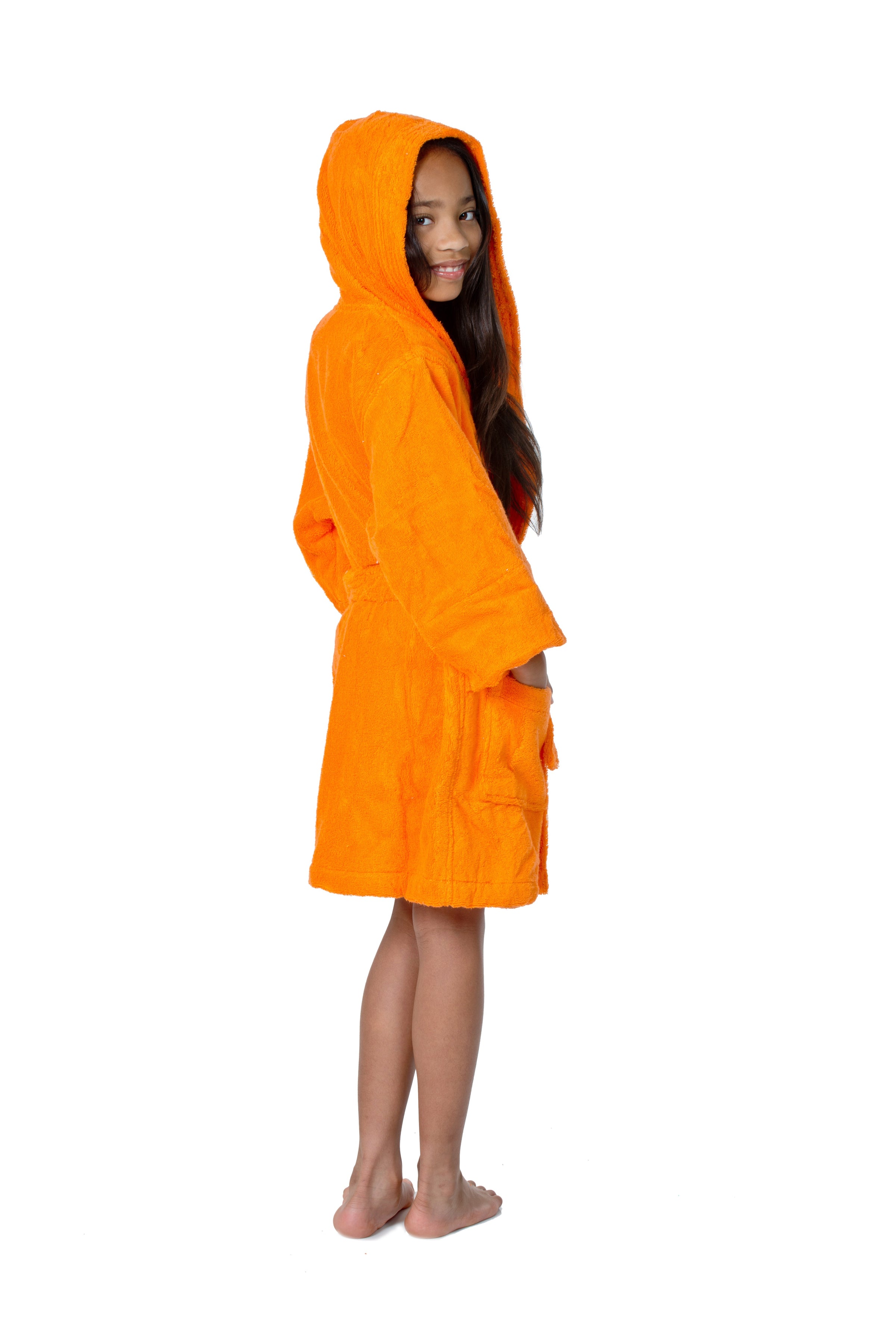 Plush, hooded children's cover-up made of thick 100% Turkish Cotton. 16 oz. per sq. yd. of super absorbent, thirsty terry cloth inside and out.
